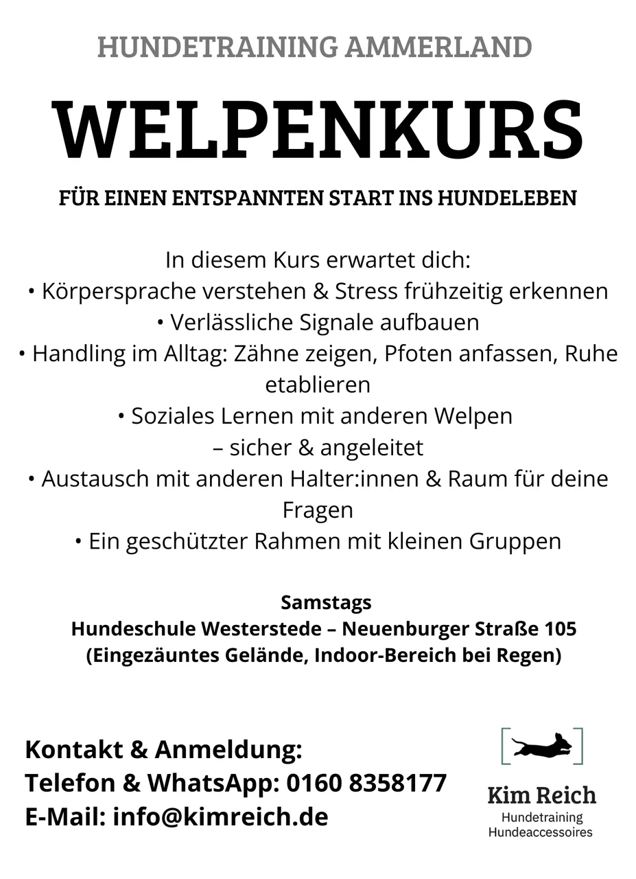 | Welpenkurs (6x) | 150,00 EUR |